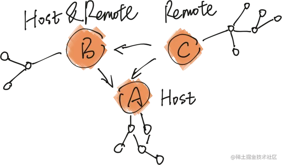 结合以上,不难看出,mf实际想要做的事,便是把多个无相互依赖、单独部署的应用合并为一个。通俗点讲,即mf提供了能在当前应用中远程加载其他服务器上应用的能力。对此,可以引出下面两个概念: