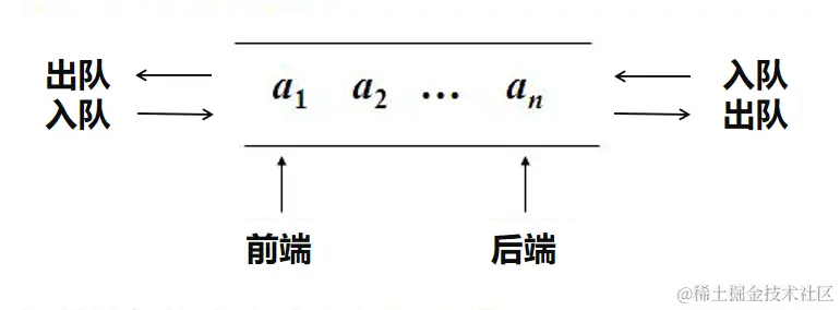 在现实生活中,电影院、餐厅中排队的队伍就是双端队列最好的例子。例如,一个刚买了票的人如果只是还需要再问一些简单的信息,就可以直接回到队伍的头部。另外,队伍末尾的人如果赶时间,他可以直接离开队伍。