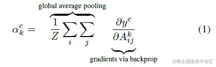 所以对的求导能够得到什么?得到的就是这个特征值对的重要程度,再来一个全局平均池化,得到就是特征映射第个通道对的重要程度了。