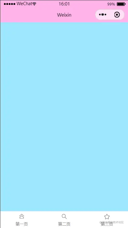 从图中可以看出, 从上往下依次为: navigation, page 和 tabbar. 由于我们没有使用自定义 navigation 栏, 因此, 我们只需要处理 page 和 tabbar 二者自身的弹性布局和相互之间的匹配即可