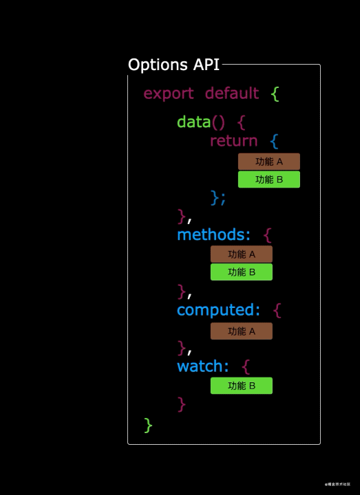 - 同一个功能的相关数据方法被强行分离,可能data里的某个变量和methods里的某个使用方法隔500行,我称之为奥义·反复横跳