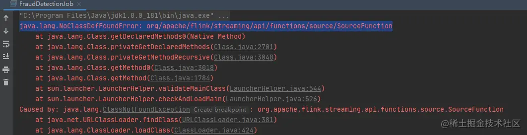 java.lang.NoClassDefFoundError: org/apache/flink/streaming/api/functions/source/SourceFunction