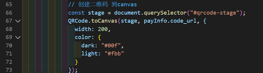QRCode.toCanvas(canvas标签(画布),要转的二维码的字符串,[配置,基本上是以对象的形式],[cb(error)])