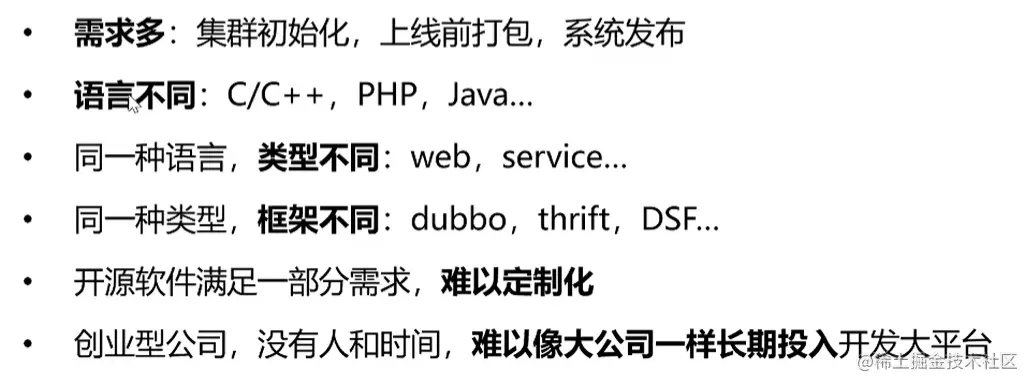 晚上听了58沈剑老师的自动化上线的课程的一些分享,记录下笔记和一些思考,这要是讲了从创业公司的手动发布到自动化发布的架构和设计。