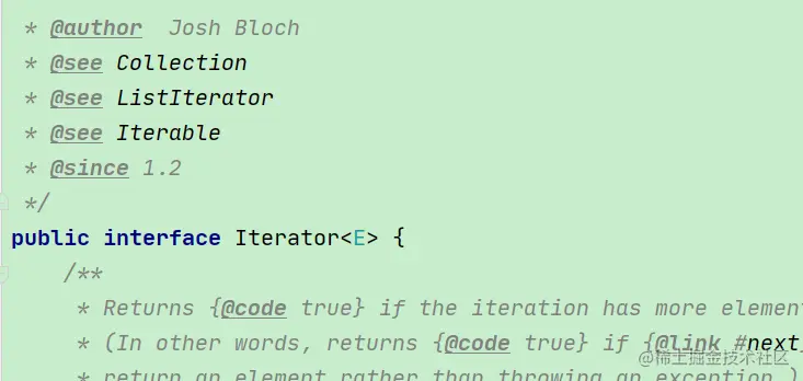 Iterator:迭代器接口。一般使用java内置的接口,该接口提供了遍历时所需的相关方法。 ConcreteIterator:实现了迭代器接口的具体迭代器类。用于迭代集合。