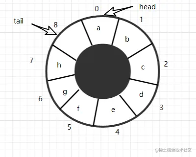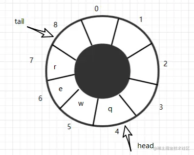 从图中我们可以很明显的看出当有数据入队时,数据放到下标为8的位置,而tail则要更新为0,转化为代码时,我们要如何判断呢?