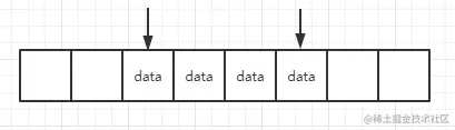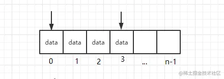 队列的特点是先进者先出,所以需要两个指针,一个指针指向第一条数据,另一个指向最后一条数据