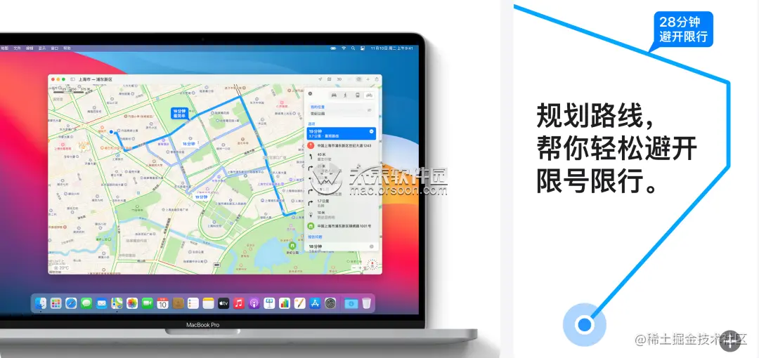 Mac 版地图 app 也有所更新,利用了宽大的显示屏,对规划行程的用户更加友好,支持帮用户规划骑行路线,然后将路线发送到 iPhone 上。不过这个需求真的很奇怪,因为一般手机地图应用比如 Google 和百度地图完全可以做到这一点。