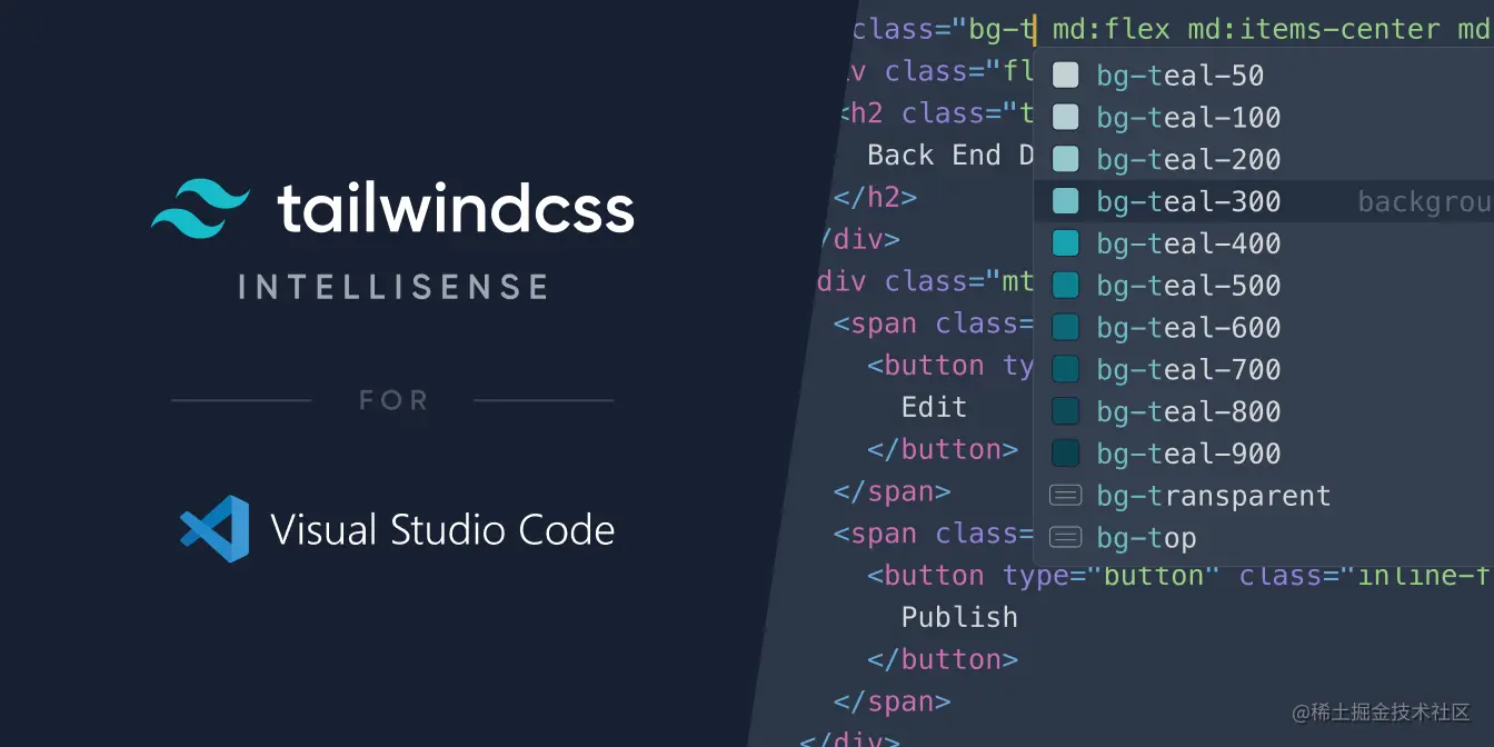 面向 Visual Studio 代码的智能化 Tailwind CSS 工具。 通过为 Visual Studio Code 用户提供高级功能,如自动补全功能、语法突显和 lint 功能,从而增强了 Tailwind 开发体验。