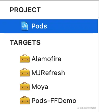 成功执行pod install之后我们就将这两个库引入到了项目,这时项目目录变成了这样: