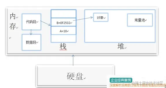 2)堆 对象堆(垃圾堆),用来存放动态产生的数据,比如new出来的对象。注意创建出来的对象只包含属于各自的成员变量,并不包括成员方法。因为同一个类的对象拥有各自的成员变量,存储在各自的堆中,但是他们共享该类的方法,并不是每创建一个对象就把成员方法复制一次 3) 常量池 JVM为每个已加载的类型维护一个常量池,常量池就是这个类型用到的常量的一个有序集合。包括直接常量(基本类型,String)和对其他类型、方法、字段的符号引用(1)。池中的数据和数组一样通过索引访问。由于常量池包含了一个类型所有的对其他类型、方法、字段的符号引用,所以常量池在Java的动态链接中起了核心作用。常量池存在于堆中 4) 代码段 用来存放从硬盘上读取的二进制字节码 5)数据段 用来存放static定义的静态成员