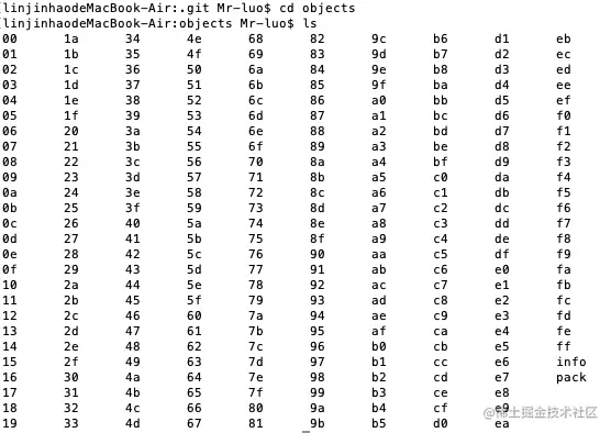 可以看到进入 objects 文件夹中全都是两个字符开头的文件夹
