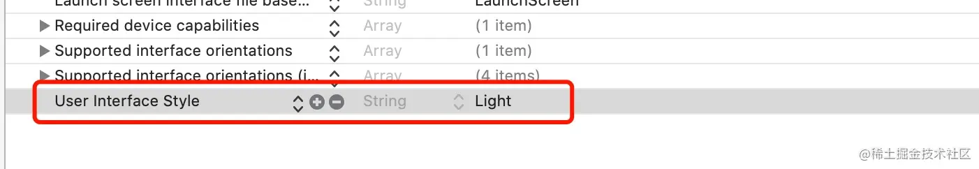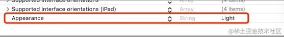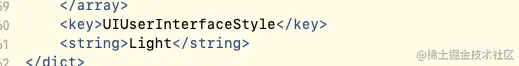 <key>UIUserInterfaceStyle</key> <string>Light</string>