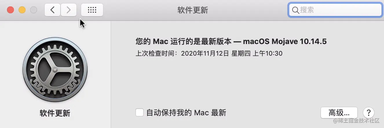 10.14.5系统,在检查更新系统时可能会出现无法检查到10.15.x的系统,需要关闭代理或者断网重连下网络。