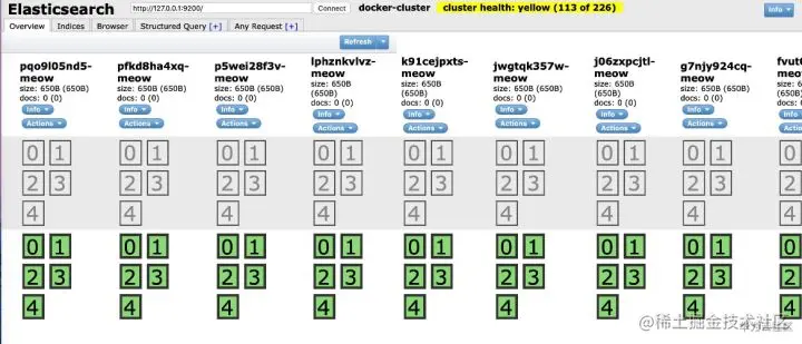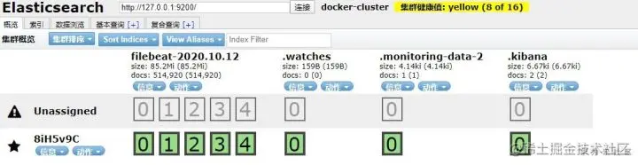 我们运行所有的组件之后,首先看下 elasticsearch-head 中的索引变化: