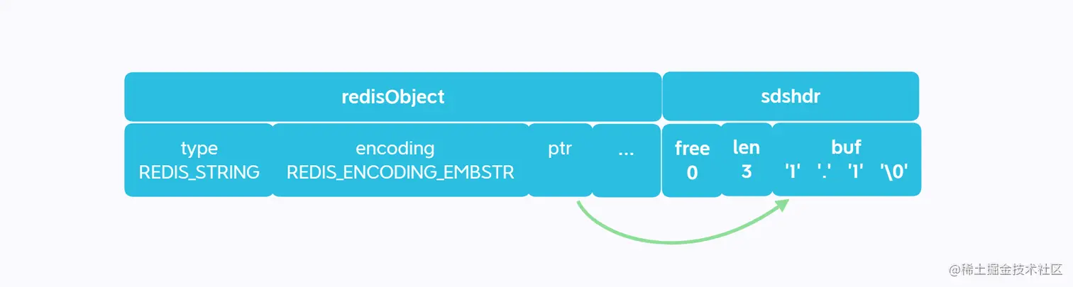 embstr编码的字符串对象底层存储如下: