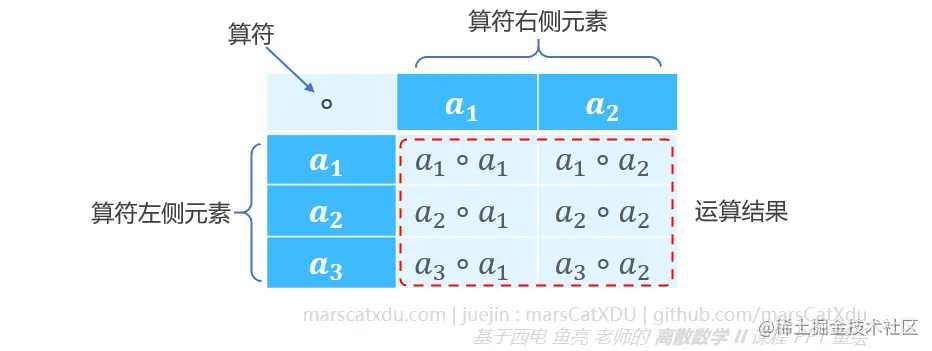 这里的 n n n 元中的 n n n 称为运算的阶。n n n 元运算到底是什么呢?举例来说,二元运算是:由两个元素形成第三个元素的一种规则
