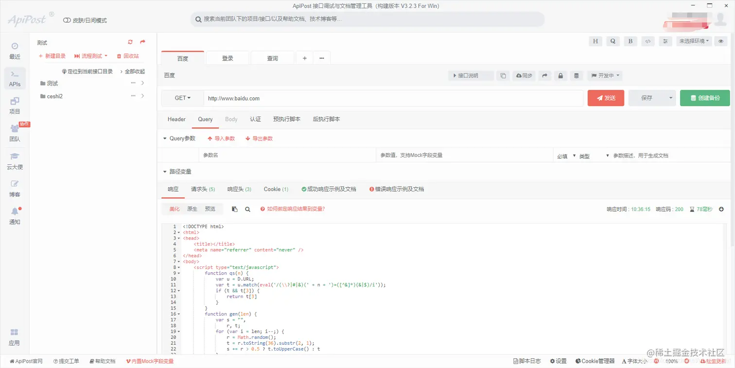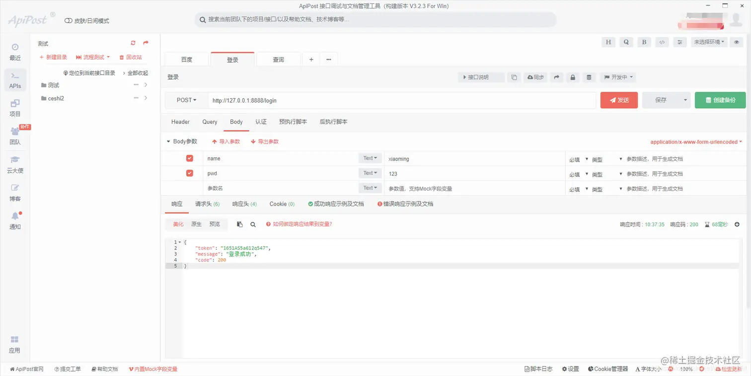也可以使用工具进行接口测试,比如国产的接口测试工具apipost(apipost-www.apipost.cn)