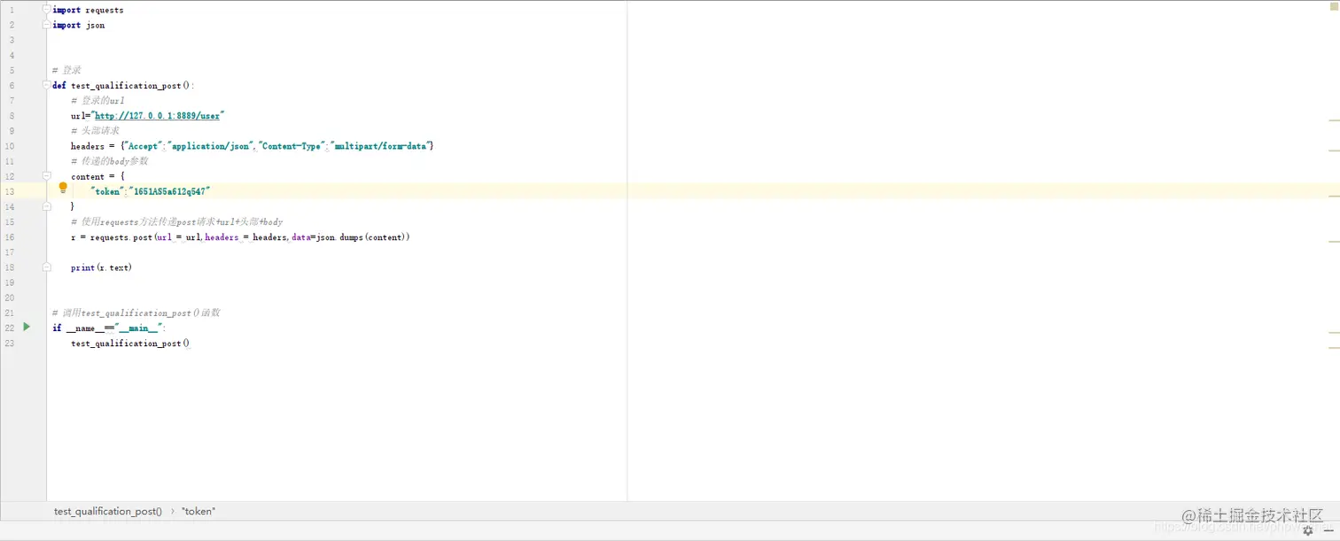 首先引用requests库和json库,因为我们使用的是requests进行接口测试的。