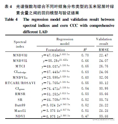 基于光谱指数的不同叶倾角分布下玉米冠层叶绿素含量反演