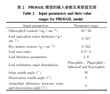 2 PROSAIL 模型是冠层辐射传输模型SAIL 模型与叶片光学模型PROSPECT 的耦合模型,是目前使用最广泛的冠层辐射传输模型之一。