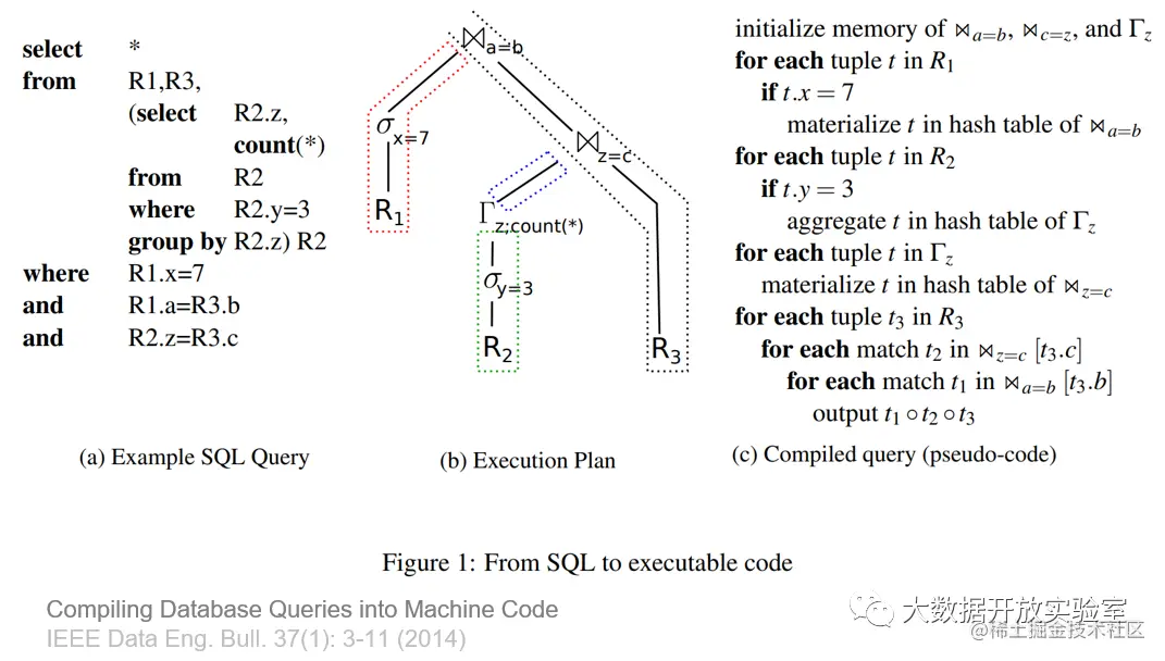 传统的查询处理采用火山模型,查询树上的每个节点是一个通用的Operator,优势在于Operator可以任意组合。但Operator拿到的记录只是一个字节数组,还需要调用另一个方法来解析属性以及属性类型。如果这种设计放到内存数据库中,属性以及类型的解析都是在Runtime而非编译时进行的,会对性能产生影响。