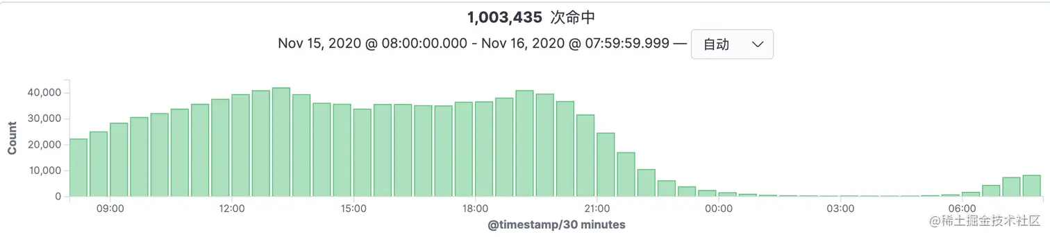 Date Histogram在某些场景下是很有用的功能,比如我们想查看时间规律或者找出某些特殊时段的时候。 但是在某些场景下又没有什么用处,比如我们想检索一些比较少出现的信息的时候。所以如果Date Histogram能变成可选项就好了。