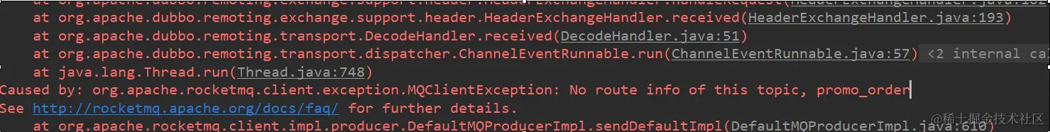 关于RocketMQ报错信息:MQClientException:no route info of this topic。
