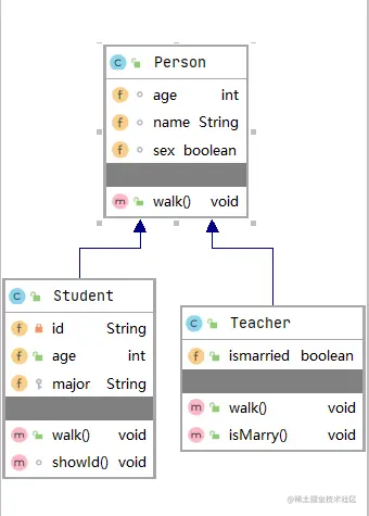 如:Person的walk方法是public,那么子类Student的walk方法只能是public,而不能是其他。
