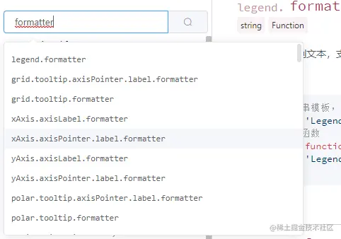 在legend里面formatter的参数是固定的,只有一个,它的本身内容其实就是series里面各个例子的name标签。它的调用是依次的,并不是一下子返回全部的name,每次调用的时候只是其中一个的name,所以这里formatter的操作,是对单个进行操作的。