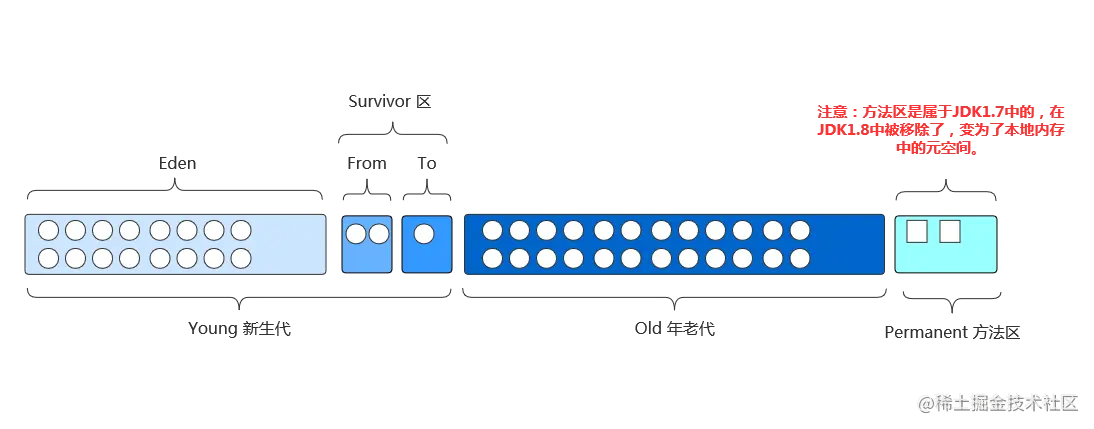 ❝下面将主要分析下 「1.7、1.8」 两个不同的JDK版本下的JVM运行时数据区。