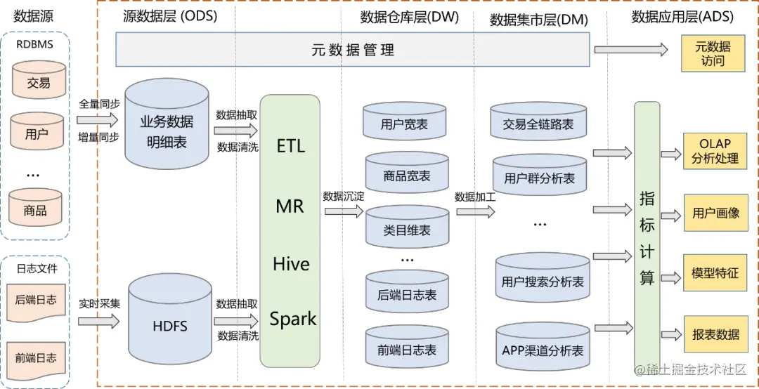- ADS:数据应用层,根据实际应用需求生成的各种数据表。
