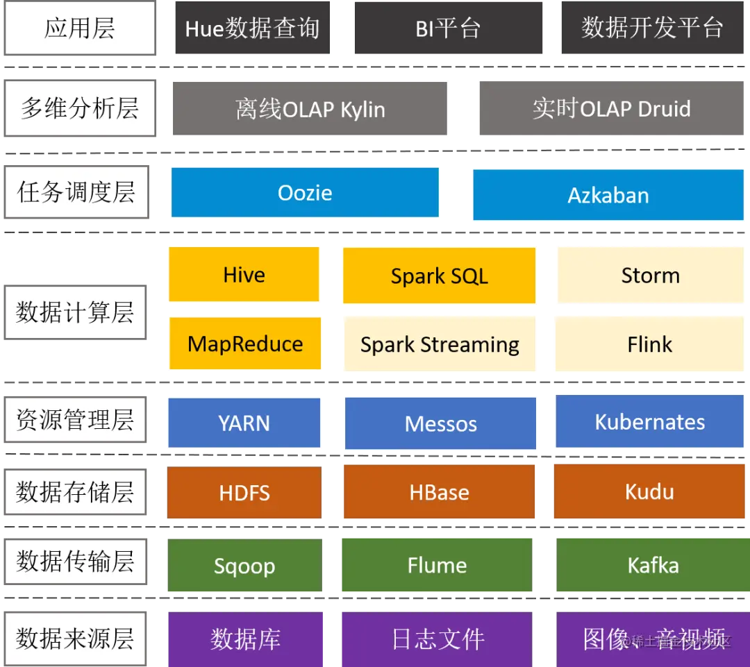 前面谈到大数据相关的技术有几十种,下面通过大数据平台的通用架构来了解下整个技术体系。