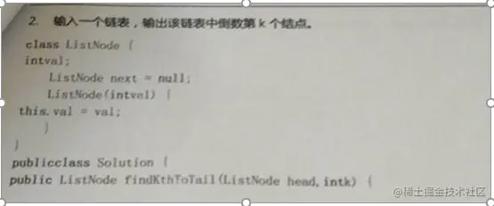 public class Solution {public ListNode findKthTotail(ListNode head, int k) { List nodeList = new ArrayList<>(); while (head != null) { nodeList.add(head); head = head.next; } return nodeList.get(nodeList.size() - k); } }