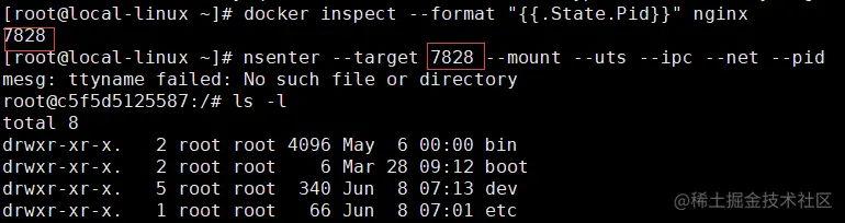 - 根据容器的pid进入容器: