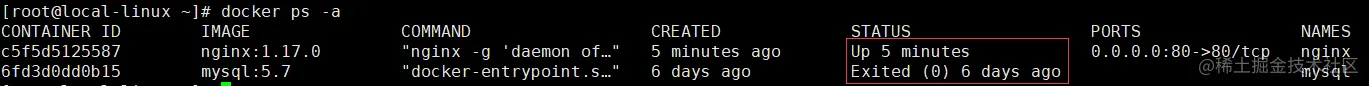 docker ps -a
