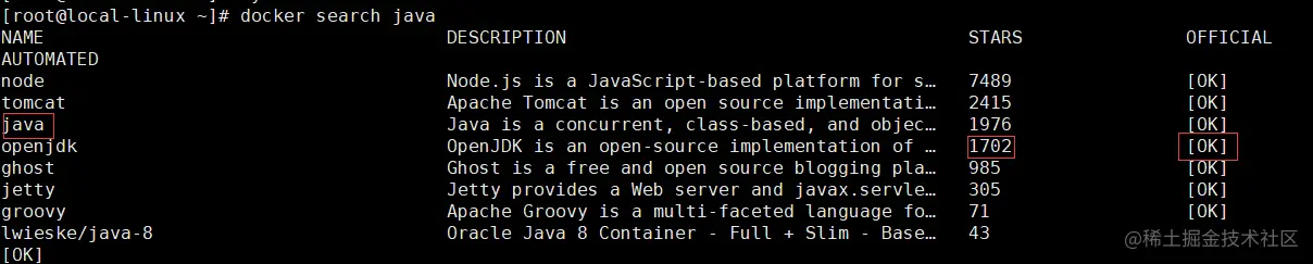 docker search java