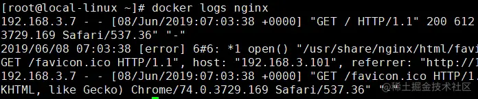 - 查看容器产生的全部日志: