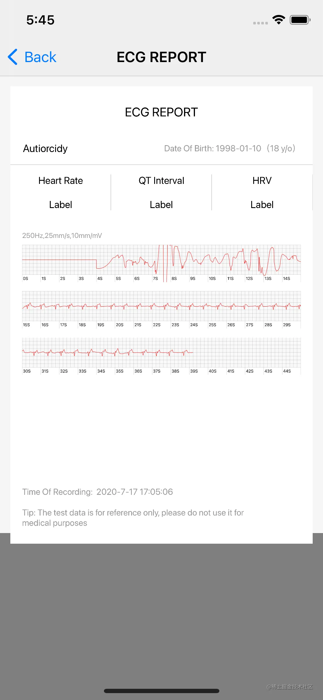 iOS 健康类型项目,心电图,心率图,睡眠图,血氧,血压,HRV 图表绘制 YOrange 2020-11-17 1,121 阅读1分钟 目前只绘制了血压图和心电图,更多内容待更新 主页 血压 心电图报告 一个高性能的实时绘制心电图 血氧 项目地址:github.com/YOrange834/…