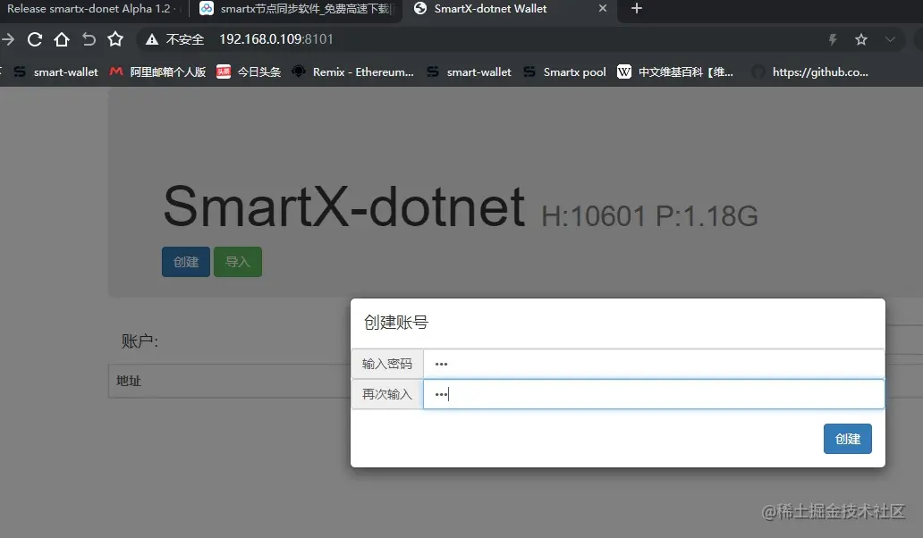 7、打开浏览器查看自己节点情况 在浏览器输入http://自己的IP:8101 ,创建账户,设置密码)