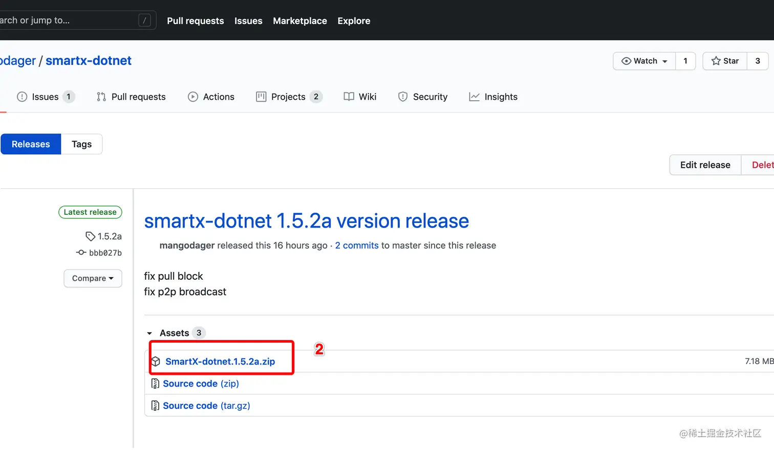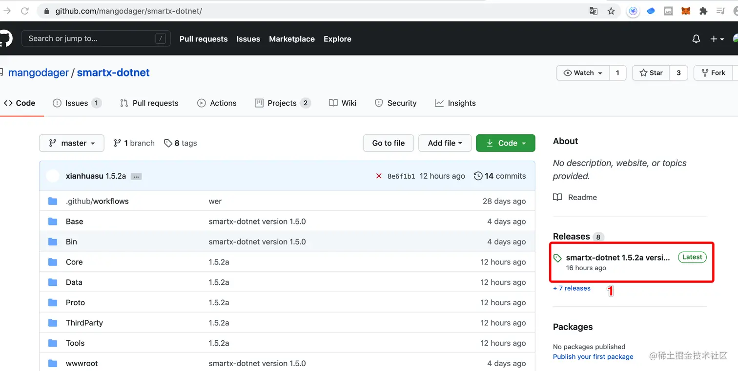 下载节点数据同步软件 下载地址:github.com/mangodager/… 下图是1.5.2版本为例,下载最新版本就行