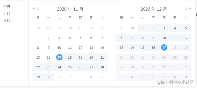 如图所示,以当前日期2020-11-17,往前只能到2020-10-18,往后只能到2020-12-17。