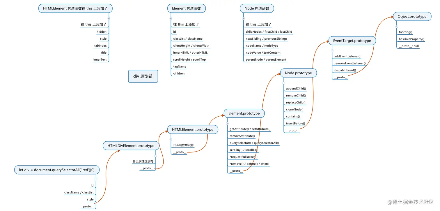 - 第一层原型:HTMLDivElement.prototype 这是所有的div的共有属性,不用细看
