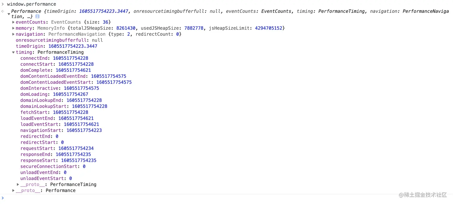 一般情况下web的性能监控主要依赖window.performance 其中的timing对象,包含了页面加载的各个阶段的起始时间