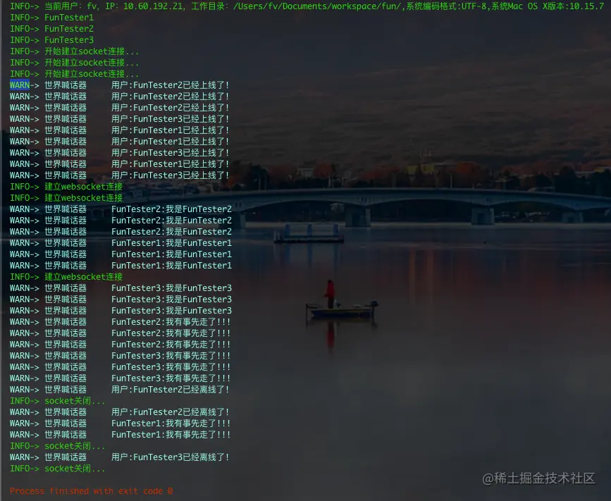 WARN-> 世界喊话器 用户:FunTester3已经离线了!