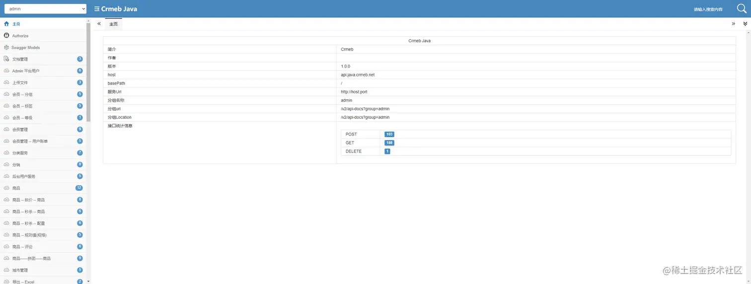 http://host:port/doc.html - 点击进入CRMEB-JAVA开源商城项目学习查看:Gitee项目地址