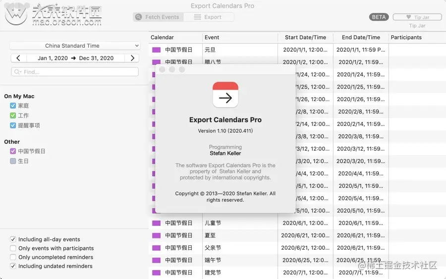 日历提醒软件Export Calendars Pro for Mac