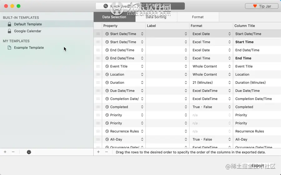 Export Calendars Pro for Mac可让您轻松地将事件和提醒从Mac的“日历和提醒”应用程序导出到Excel文件,CSV文件,制表符分隔的文本文件或直接到剪贴板。Export Calendars Pro Mac版也支持Apple日历应用程序支持的所有日历源,包括Google和Exchange日历。但这不仅是任何导出工具:它使您可以导出特殊字段,例如事件的持续时间,这对于确定可计费时间非常有用。它还使您可以从通讯簿中导出事件的任何参与者的任何联系人属性。
