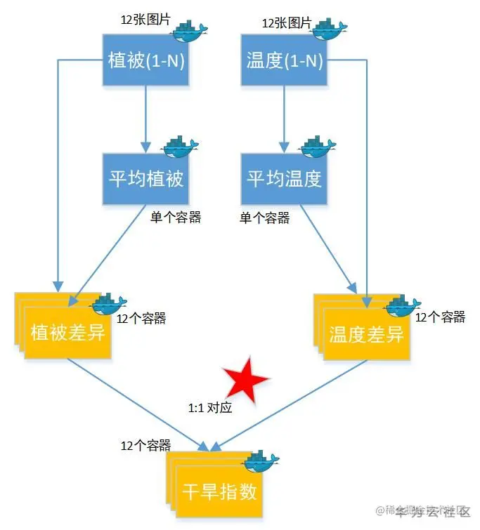 上图*号处,即步进式并发(流程指最后一步):要求1月份的植被照片,要和1月份的温度照片,一起计算。 然后2月的温植一起算。大家一起递进,如此进行并发。