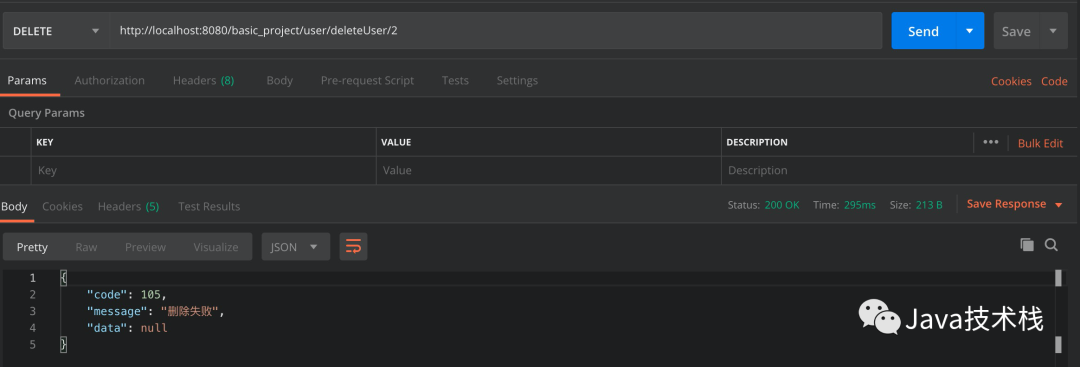 /** * 删除用户 * @param id id */ @Override public void deleteUser(String id) { // 如果删除失败抛出异常。 -- 演示而已不推荐这样干 if(!removeById(id)){ throw new CustomException(ResultEnum.DELETE_ERROR, MethodUtil.getLineInfo()); } }